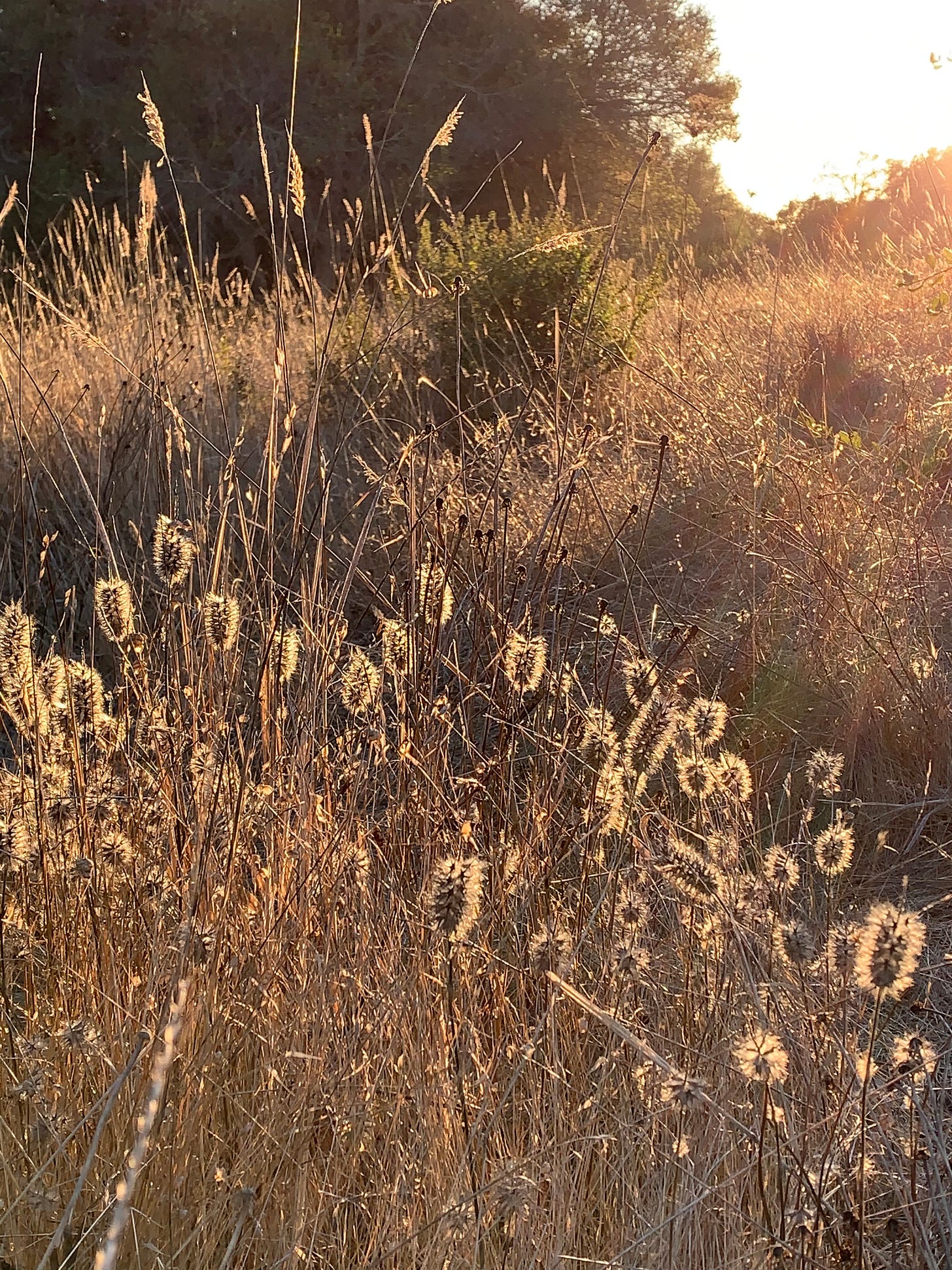 When I see the native California grasses at this time of year, dry and without their green, I think of husks of shed skin that snakes leave behind. This fragile beauty of something spent, ready to break away, thinning, having become transparent like a wing. Paper-like old skin, so light, like a letter written long ago, ink fading, nearly unreadable. Something that used to be.